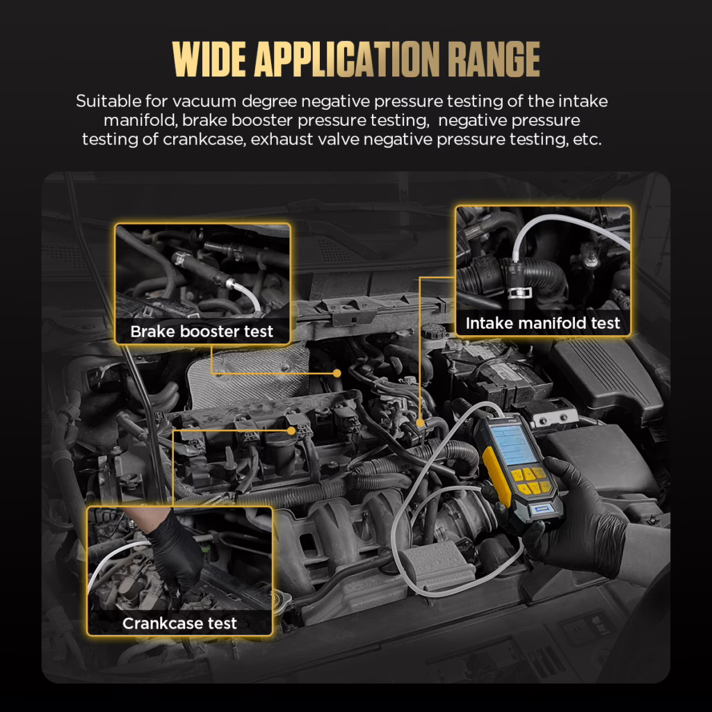 - שימושיות רחבה – בדיקות לחץ וואקום בחלקי רכב כמו בוסטר בלם ובית ארכובה.